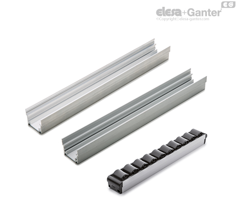 Profil udrží až 11 válečkových segmentů RLT-U, RLT-U15 nebo kuličkových segmentů RLS-U. Specifický průřez profilu umožňuje montáž válečkového a kuličkového segmentu vtlačením do profilu bez použití šroubů nebo jiných upevňovacích prvků.