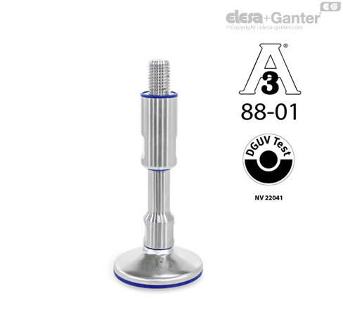 Polohovací nohy GN 19 vyhovují hygienickému standardu 3-A 88-01 a testovacím zásadám DGUV, díky čemuž jsou vhodné k použití v hygienických oblastech.