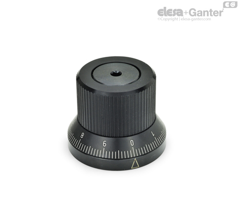 Pomocí tohoto regulačního kolečka GN 700 lze hřídel bez omezení nastavovat v obou směrech otáčení. Mechanismus odstraňuje vůli v závitu a do max. zatížení 15 Nm zabezpečí pevné zajištění hřídele v jakékoliv poloze.