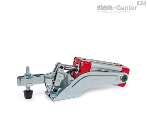 Pneumatické rychloupínače GN 860 mají stejný princip upínání a po stránce konstrukční a rozměrové se shodují se svislými rychloupínači, které se ovládají ručně GN 810 .
