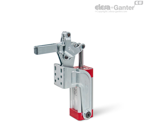 Pneumatické rychloupínače GN 862 mají stejný princip upínání a po stránce konstrukční a rozměrové se shodují se svislými rychloupínači, které se ovládají ručně GN 812.