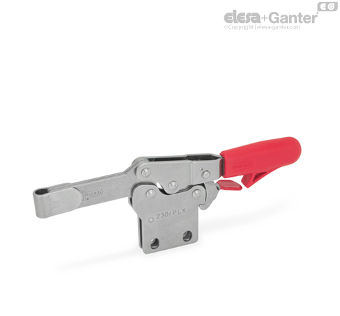 Vodorovné rychloupínače pracují na principu lomené páky: ovládací páka a upínací rameno se pohybují v opačném směru. Vyžadují málo místa při upnutí.