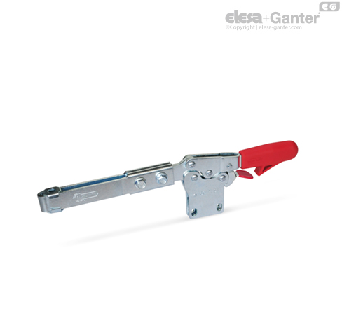 Vodorovné rychloupínače pracují na principu lomené páky: ovládací páka a upínací rameno se pohybují v opačném směru. Vyžadují málo místa při upnutí.