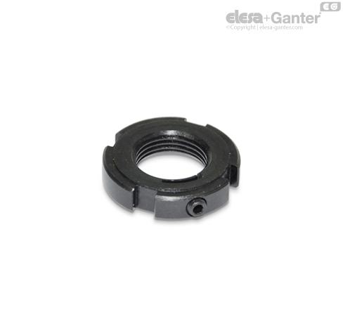 Kontramatice se zářezy GN 1804.2 může být zajištěná proti otáčení na závitu hřídele pomocí upínacího šroubu d4. Závity matice jsou chráněné proti poškození a matice může být používaná opakovaně dle potřeby.