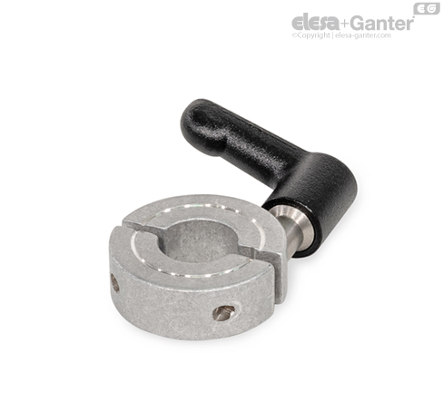 Pokud není možné axiální uchycení, použijí se naříznuté stavěcí kroužky GN 707.4. Lze je snadno a rychle upnout bez použití nářadí snížením výšky nastavitelnou upínací pákou. Proto je lze použít jako například koncový doraz, který je nutno často nastavovat.