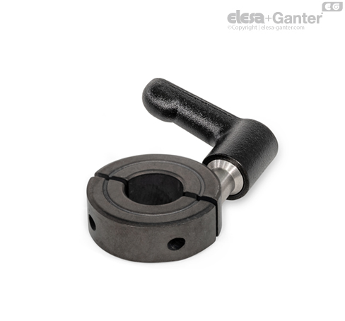 Pokud není možné axiální uchycení, použijí se naříznuté stavěcí kroužky GN 707.4. Lze je snadno a rychle upnout bez použití nářadí snížením výšky nastavitelnou upínací pákou. Proto je lze použít jako například koncový doraz, který je nutno často nastavovat.