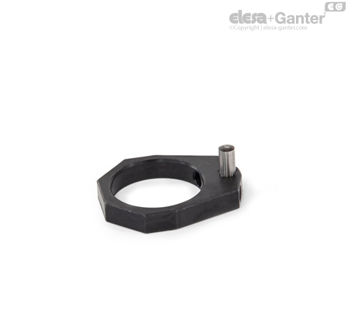 Polohovací kroužky GN 9192.2 omezují rozsah otáčení přítlačných upínačů GN 9192 na 110° doleva nebo doprava prostřednictvím polohovacího čepu. Polohu tohoto kroužku lze nastavovat tak, aby bylo zajištěno spolehlivé dosahování upínací polohy, jestliže upínač při otáčení přilehne k polohovacímu čepu.