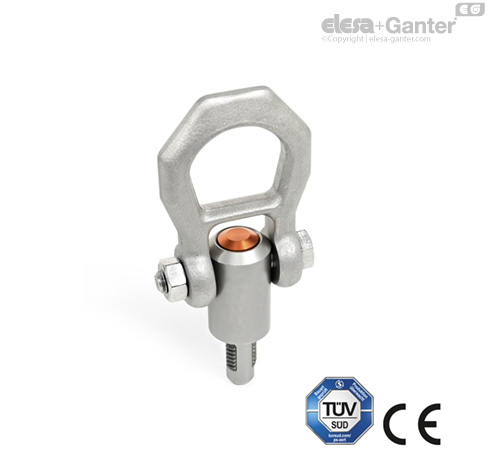 Závěsná oka s čepem a závitem GN 1133 jsou nosné prvky určené pro rychlé a snadné použití. Stisknutím tlačítka se odjistí závitové segmenty, takže čepem lze volně pohybovat oběma směry v montážním závitu. Tím je eliminován časově náročný proces zašroubování či vyšroubování, který je nutný u běžného zvedacího vybavení, jako například u závěsných ok se šroubem.