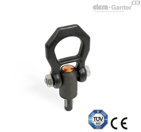 Závěsná oka s čepem a závitem GN 1133 jsou nosné prvky určené pro rychlé a snadné použití. Stisknutím tlačítka se odjistí závitové segmenty, takže čepem lze volně pohybovat oběma směry v montážním závitu. Tím je eliminován časově náročný proces zašroubování či vyšroubování, který je nutný u běžného zvedacího vybavení, jako například u závěsných ok se šroubem.