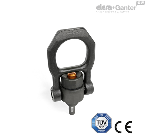 Závěsná oka s čepem a závitem GN 1135 jsou nosné prvky určené pro rychlé a snadné použití. Stisknutím tlačítka se odjistí závitové segmenty, takže čepem lze volně pohybovat oběma směry v montážním závitu. Tím je eliminován časově náročný proces zašroubování či vyšroubování, který je nutný u běžného zvedacího vybavení, jako například u závěsných ok se šroubem.