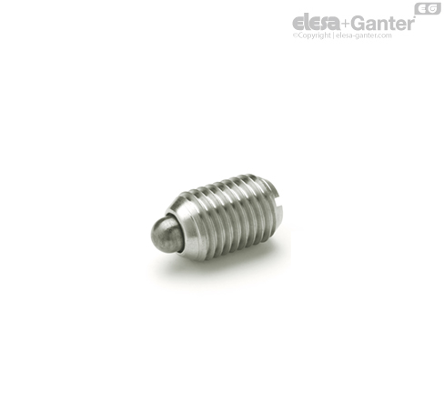 Odpružené šrouby GN 615.1 s čepem se používají k aretaci, jako tlačné prvky nebo jako prvky pro uvolňování.
