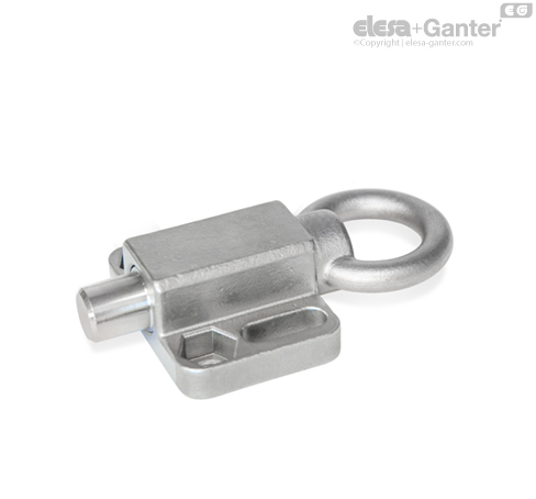 Typ s aretací polohy se používá, když čep pístku nemá dočasně vyčnívat. Za tímto účelem se po zasunutí pojistného čepu otočí tahací kroužek stranou. Kroužek je v této poloze držen záchytnou drážkou na horní straně pouzdra.