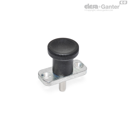 Pružinové pístky s čepem z nerezové oceli GN 608.6 s aretací polohy se používají v případech, kdy je vyžadována možnost zajištění čepu mimo záběr v zatažené poloze. Po zatažení čepu se rukojeť otočí o 90°. Rukojeť je v této pozici zajištěná drážkou a udržuje čep v zatažené poloze.