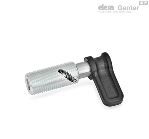 Pružinové pístky s páčkou GN 712.1 se používají v aplikacích, kde je vyžadována možnost zajištění čepu pístku ve vysunuté poloze pouze příležitostně. Otočením páčky o 90°, resp. 120° proti směru hodinových ručiček se pístek posune zakřiveným otvorem v tělesu. Poté je čep pístku vysunut.
