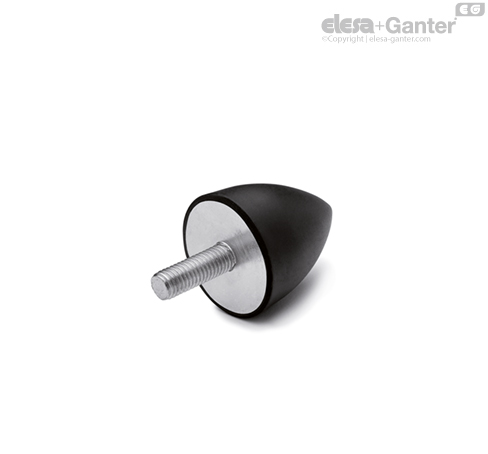 Přírodní pryž NR, tvrdost 40, 70 s tolerancí ± 5 Shore A pro provedení se základnou z nerezové oceli AISI 304.