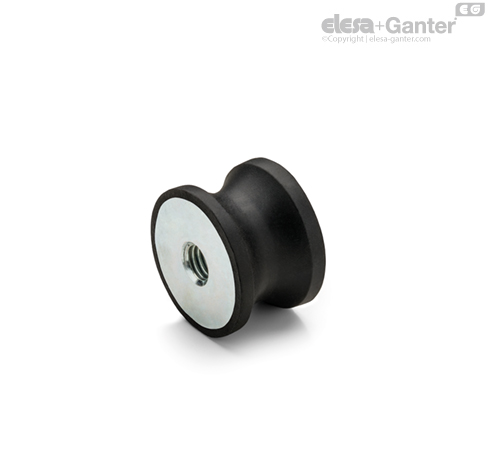 Přírodní pryž NR, tvrdost 40, 70 s tolerancí ± 5 Shore A pro provedení se základnou z nerezové oceli AISI 304.