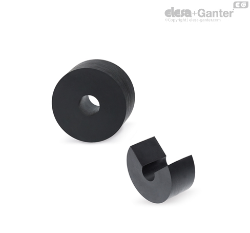 Těleso silentbloku z přírodní pryže NR, černá barva, tvrdost 40, 55, 70 Shore A ±5.