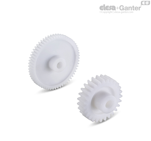 Díky vystruženému otvoru v toleranci H10 můžete ozubené kolo usadit na hřídel. Při použití s nízkým točivým momentem není nutný otvor s drážkou pro pero, jelikož k upnutí postačí šroub. Nedoporučujeme otvor zvětšovat o více než 2 mm oproti průměru v tabulkách, aby materiál nezačal praskat.