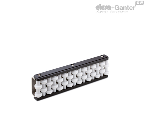 Tvar s válcovitou styčnou plochou, technopolymer z polyacetalové pryskyřice, barva bílá.