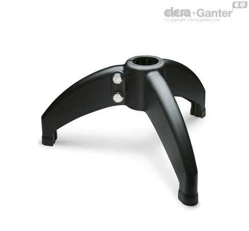 Podpěrné základny trojnoha jsou dodávané s mosaznými pouzdry s průchozími závitovými otvory pro montáž polohovacích nohou typu LS.A, LV.A, LV.F.