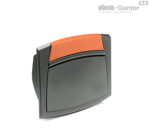 EPR-F-SH: madlo s ochrannou příklopkou z technopolymeru, barva šedo-černá, matný povrch, vratná pružina z nerezové oceli.