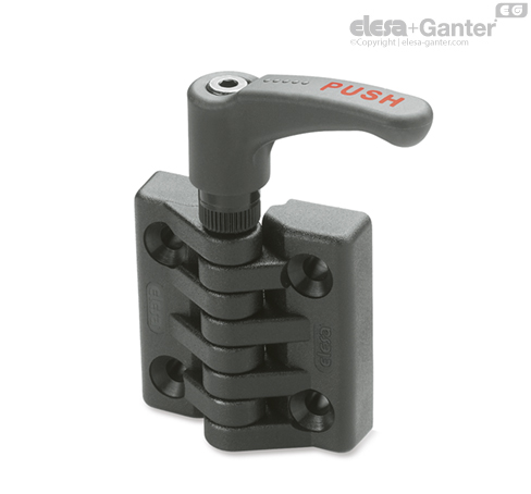 Regulační mechanismus třecí brzdy pantu se ovládá stlačením páky směrem dolů (PUSH), kdy dojde ke spojení ozubení. Následným otáčením páky se brzda uvolňuje nebo utahuje. Při uvolnění páky rozpojí pružina ozubení, páka se vrátí do své původní polohy a volně se otáčí spolu s dveřmi aniž by překážela.