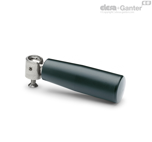 Tato bezpečnostní sklopná rukojeť (ELESA patent) je opatřená speciálním vratným mechanismem "Fold-O-Matic"®, který rukojeť po skončení operace automaticky vrací do stabilní sklopené klidové polohy. K nastavení rukojeti do pracovní polohy stačí, aby ji operátor vyklopil nahoru a lehce zatlačil ve směru osy ovládacího kola. Rukojeť se zajistí ve vzpřímené poloze a kolem je pak možné volně otáčet.