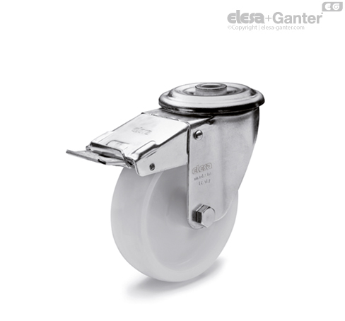 Úplná brzda, která zamezuje otáčení kola a konzoly. Optimalizované rozměry a zasouvací pedál zajišťují minimální obsazený prostor a maximální jednoduchost ovládání. Pružina z kalené uhlíkové oceli.