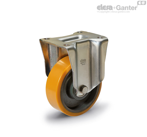 Vhodné pro použití v těžkém průmyslu a náročných podmínkách. Nalisované polyuretanové kolo zaručuje vynikající elasticitu a hodnotu valivého odporu a dobrou odolnost proti opotřebení a roztržení. Další informace viz. RE.F4.
