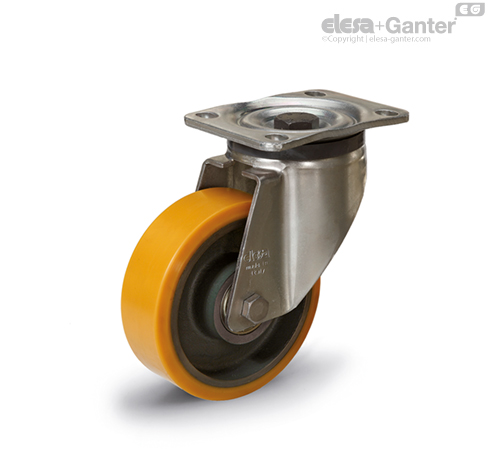 Vhodné pro použití v těžkém průmyslu a náročných podmínkách. Nalisované polyuretanové kolo zaručuje vynikající elasticitu a hodnotu valivého odporu a dobrou odolnost proti opotřebení a roztržení. Další informace viz. RE.F4.