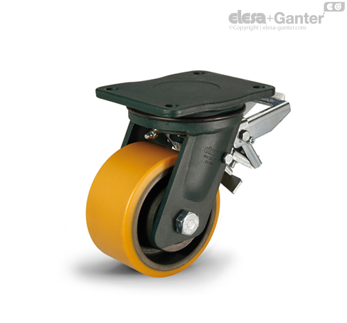 Je vhodná pro použití v těžkém průmyslu a náročných podmínkách, např. boční rázy nebo vysoká rychlost. Nalisované polyuretanové kolo zaručuje vynikající elasticitu a hodnotu valivého odporu a dobrou odolnost proti opotřebení a roztržení. Další informace viz. RE.F4.