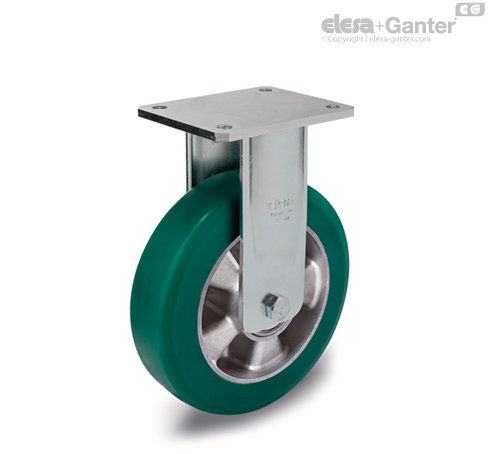 Vhodné pro použití v těžkém průmyslu a náročných podmínkách, např. boční nárazy nebo vysoká rychlost. Nalisované polyuretanové kolo zaručuje vynikající elasticitu a hodnotu valivého odporu a dobrou odolnost proti opotřebení a roztržení. Další informace viz. RE.F2.