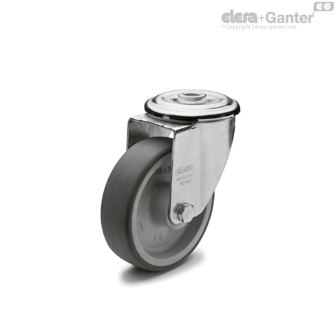 Ocelový plech pozinkovaný, konzola navržená pro zatížení do 1800 N. Dvě kuličková ložiska a přímý kontakt mezi deskou a kroužkem kuličkového ložiska s vestavěným čepem zajišťuje vynikající ovladatelnost. Nevyžaduje údržbu.