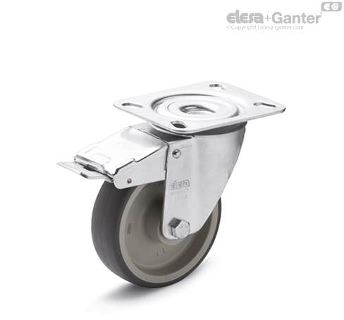 Ocelový plech pozinkovaný, konzola navržená pro zatížení do 1800 N. Dvě kuličková ložiska a přímý kontakt mezi deskou a kroužkem kuličkového ložiska s vestavěným čepem zajišťuje vynikající ovladatelnost. Nevyžaduje údržbu.