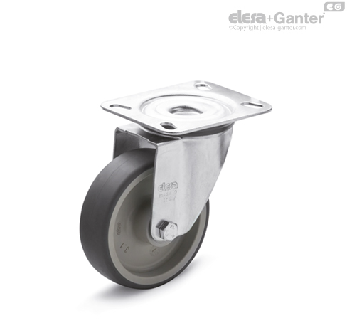 Ocelový plech pozinkovaný, konzola navržená pro zatížení do 1800 N. Dvě kuličková ložiska a přímý kontakt mezi deskou a kroužkem kuličkového ložiska s vestavěným čepem zajišťuje vynikající ovladatelnost. Nevyžaduje údržbu.