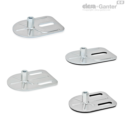 Vyrovnávací patku GN 42 lze použít v mnoha kombinacích verzí základen a stavitelných šroubů.