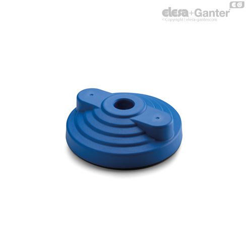 Technopolymer na bázi polyamidu (PA) vyztužený skelnými vlákny, barva modrá RAL 5005, matný povrch.
