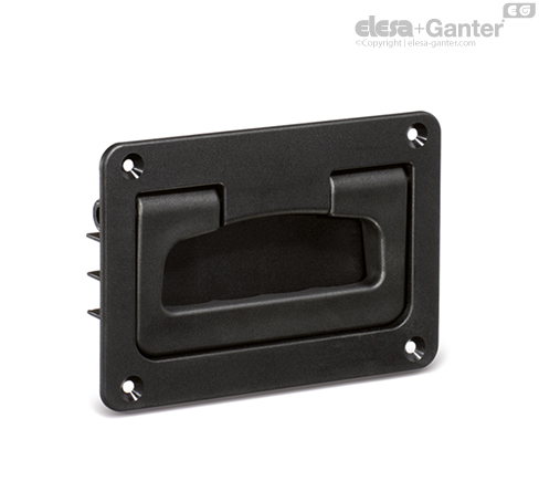 Technopolymer na bázi polyamidu (PA) vyztužený skelnými vlákny, barva černá RAL 9005 nebo šedá RAL 7040 (C33), matný povrch.