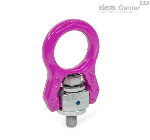 Otočná závěsná oka GN 586.2 se používají se samostatným zvedacím zařízením a vázacím vybavením. Šroubují se na vybavení nesoucí břemeno nebo přímo na břemeno a dokážou pohltit zatížení v jakémkoli směru.