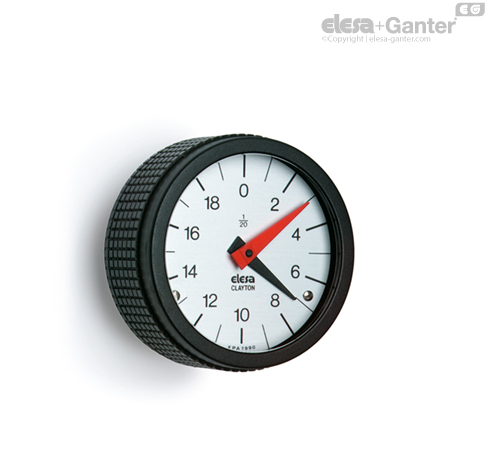 Černá ručička ukazuje počet otáček hřídele od výchozí polohy (0); červená ručička označuje částečné pootočení hřídele.