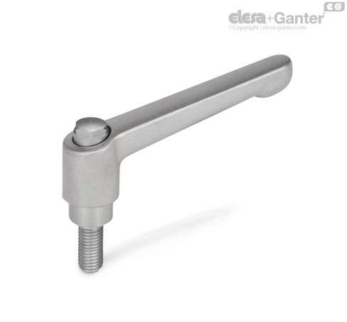 Regulovatelné páky GN 300.5 se používají tam, kde je zapotřebí upnutí ve stísněném prostoru nebo tam, kde je požadována konkrétní poloha páky. Šroubová vložka je spojena s rukojetí prostřednictvím ozubení, které lze snadno rozpojit.