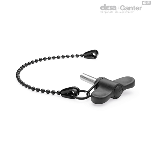 Pružný zadržující kroužek uchycený v drážce křídlové matice se může volně protáčet. Svinutý kroužek připojuje pružný zadržující kroužek k řetězu.