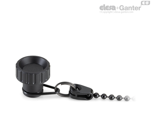 Kuličkový řetízek a připojovací koncovky z technopolymeru na bázi acetalu (POM), barva černá.