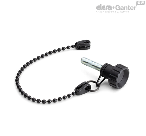 Kuličkový řetízek a připojovací koncovky z technopolymeru na bázi acetalu (POM), barva černá.
