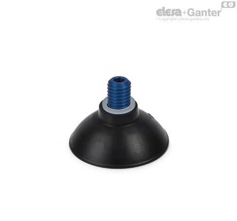 Vakuové přísavky s podpěrou opatřenou závitem G 1/4" mají vnitřní otvor se závitem M8, který v případě potřeby umožňuje zasouvání upínacího šroubu opatřeného kalibrovaným otvorem.