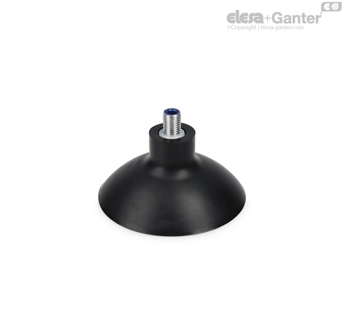 Vakuové přísavky s podpěrou opatřenou závitem G 1/4" mají vnitřní otvor se závitem M8, který v případě potřeby umožňuje zasouvání upínacího šroubu opatřeného kalibrovaným otvorem.