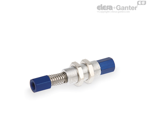 Závitové pouzdro z hliníku a šestihranné matice z poniklované mosazi.