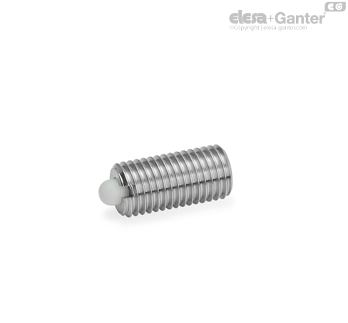 Odpružené šrouby GN 616 s čepem se používají k aretaci, jako tlačné prvky nebo jako prvky pro uvolňování.