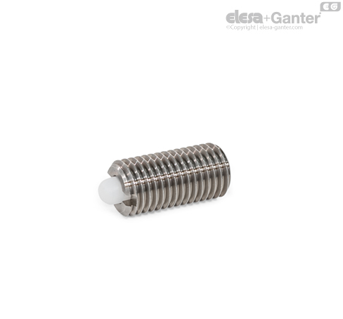 Odpružené šrouby GN 616 s čepem se používají k aretaci, jako tlačné prvky nebo jako prvky pro uvolňování.
