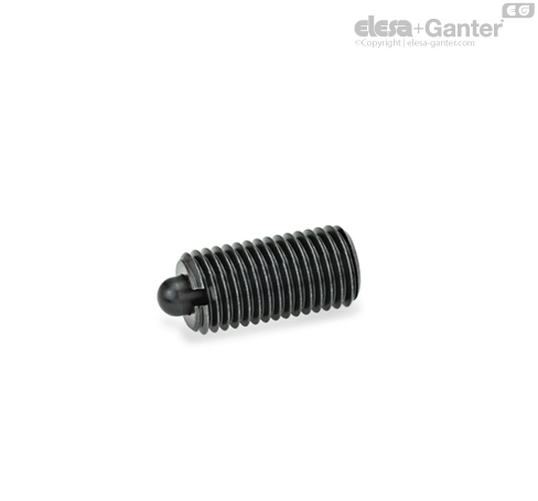 Odpružené šrouby GN 616 s čepem se používají k aretaci, jako tlačné prvky nebo jako prvky pro uvolňování.